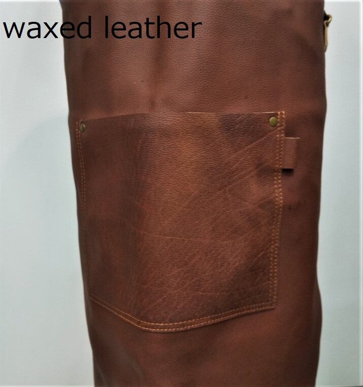 ワックスレザーで、耐水性・耐火性に優れ、ヘビーデューティーエプロンとして、アウトドアライフ、アーティスト、シェフにも!